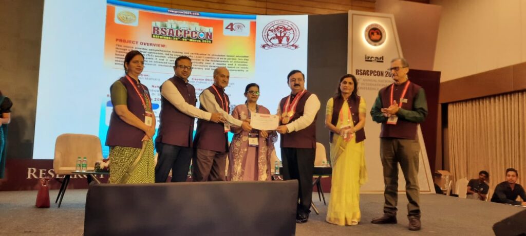 Dr Vaishali Shelgaonkar HoD Anaesthesia have successfully completed Simulation Fellowship and Faculty Development program in Medical Simulation.She has received Certification today at International Conference by RSACPCON at Indore